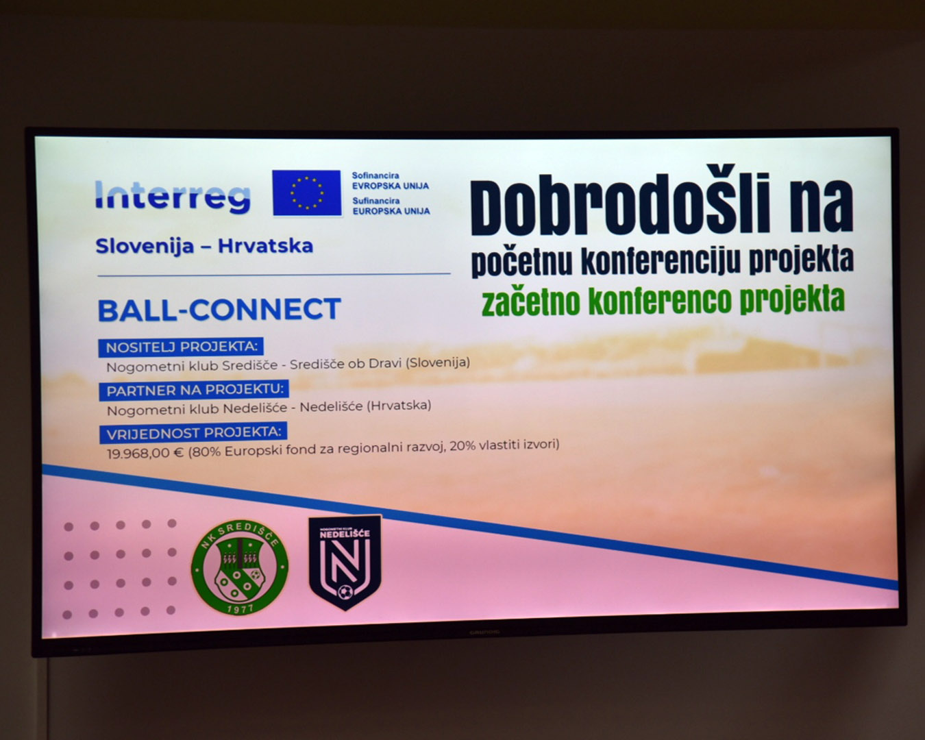 U dvorani za sastanke sportskog centra Sport Hub 12. lipnja 2025. u Nedelišću je održana početna konferencija projekta BALL-CONNECT, čiji je nositelj Nogometni klub Središče iz Središča ob Dravi i partner u provedbi Nogometni klub Nedelišće. Projekt se provodi u sklopu programa Interreg Slovenija-Hrvatska, ukupna vrijednost projekta je 19.968,00 €, od čega Europski fond za regionalni razvoj sufinancira 80%, a preostalih 20% sufinanciraju klubovi iz vlastitih izvora.
